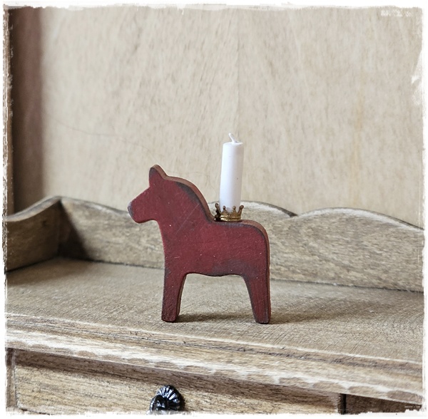 Lieferumfang: Schedisches Dalapferd aus Resin mit Kerze