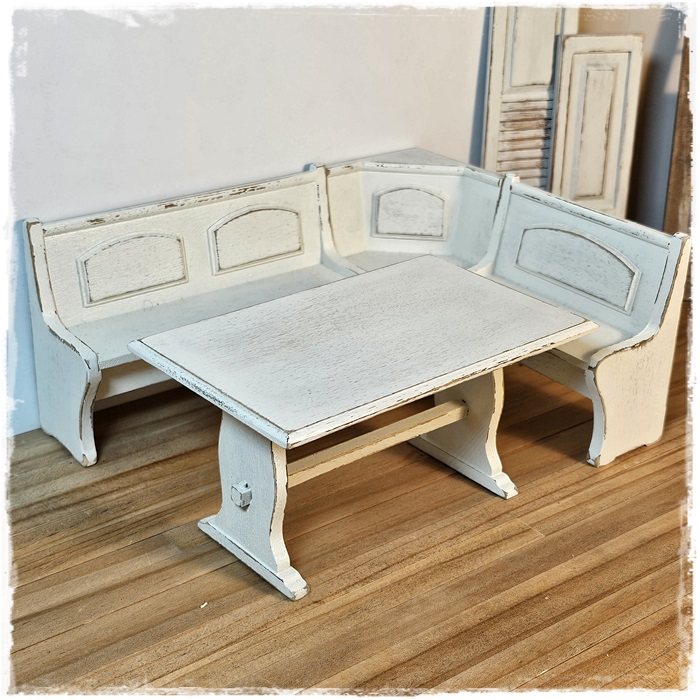 Exclusive Dollshouse furniture in 1:12 scale, handcrafted and handpainted. Collectors item, not suitable for under 6 years.